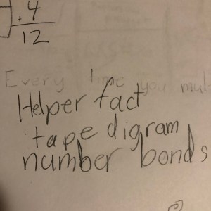 So I gave each student a prompt. The prompt was “write everything that you know about multiplication strategies.” It was in 12 point font at the top of a 8 x 11 sized paper. Below the prompt was a massive canyon of space. After I passed out the papers I had about a third of my class raise their hands. Apparently they weren’t used to this type of prompt or activity. I told the students that I’d answer questions about the prompt, but wouldn’t give them any examples. Some students were confused at first. I told them that they would have five minutes to complete the task and drawings to show strategies were certainly okay. A few students gave sighs of relief. I started the timer and the students were off to writing.