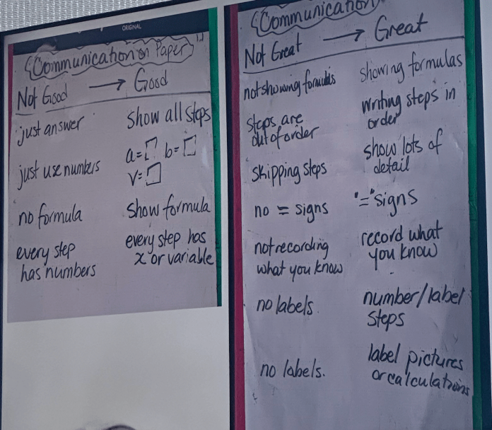 This year, I wanted to go a step further: to help students self-monitor their behavior and advocate for themselves while working at the boards. That goal took shape after attending the BTC Conference in Seattle this summer. One standout session, led by Idaho math teacher Nicholas Stevener explored how students can grade and norm themselves at the whiteboards.