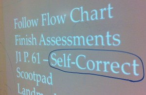 Students took the test and I passed back the results the next day. Like in past years, I have my students fill out a test reflection and goal setting page. This page is placed in their math journals and I review it with each student. I decided to use Pam’s idea on lagging homework/coding and add this to my student reflections. Last year my students used a reflection sheet that indicated problems that were correct or incorrect and they developed goals based on what they perceived as strengths and improvement areas. This year I’m attempting to go deeper and have students look at not only correct/incorrect, but also at error analysis.